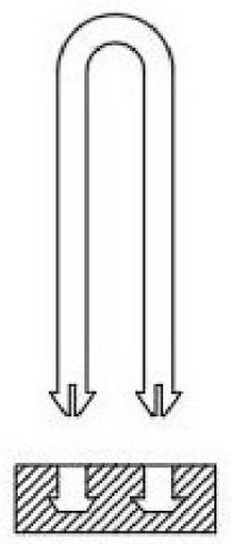 图2是本实用新型实施例1的结构示意图2; 图3是本实用新型实施例1的结构示意图3; 图4是本实用新型实施例1的结构示意图4; 图5是本实用新型实施例2的结构示意图1; 图6是本实用新型实施例2的结构示意图2; 图7是本实用新型实施例3的结构示意图1; 图8是本实用新型实施例3的结构示意图2; 图9是本实用新型实施例3的结构示意图3; 图10是本实用新型实施例4的结构示意图1; 图11是本实用新型实施例4的结构示意图2; 图12是本实用新型实施例4的结构示意图3; 图13是本实用新型实施例4的结构示意图4; 图14是本实用新型实施例4的结构示意图5; 图15是本实用新型U形插件的断面示意图1; 图16是本实用新型U形插件的断面示意图2; 图17是本实用新型U形插件的断面示意图3; 图例说明: 1-左侧直立腿,2-右侧直立腿,3-U形连接部,4-倒刺,5-槽口。