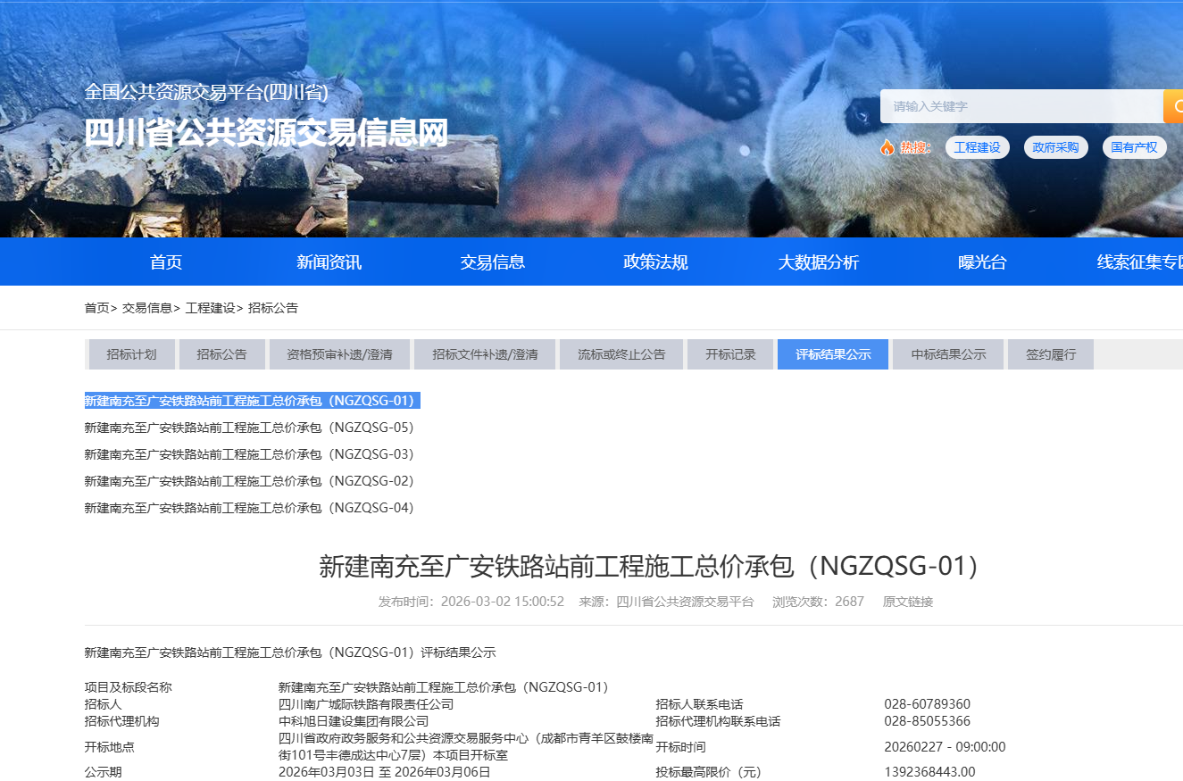 来源:四川省公共资源交易信息网、公路铁路中标快讯