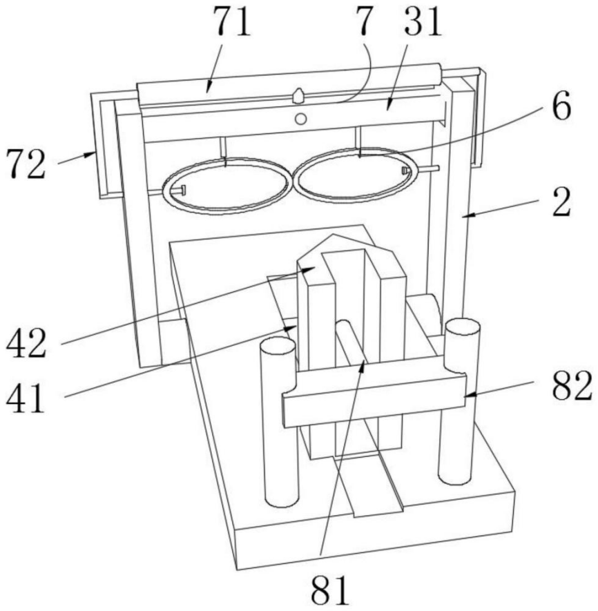 图1图1为本实用新型的结构示意图;   图2   图3 图2为本实用新型的冲击单元结构示意图; 图3为本实用新型的约束单元结构示意图。 图例说明: 1-底座、2-支撑架、3-约束单元、31-安装柱、32-约束环、33-套杆,4-冲击单元、41-移动槽、42-冲击块、5-包裹单元、51-软质套、52-硬板、6-吊绳组件、61-吊绳、62-吊环、7-液动组件、71-液管、72-连接杆、8-驱动组件、81-推动杆、82-气缸。 ——摘录自“国家知识产权局网站” 审核:许喜娟 整理、编辑:程凤娟 |