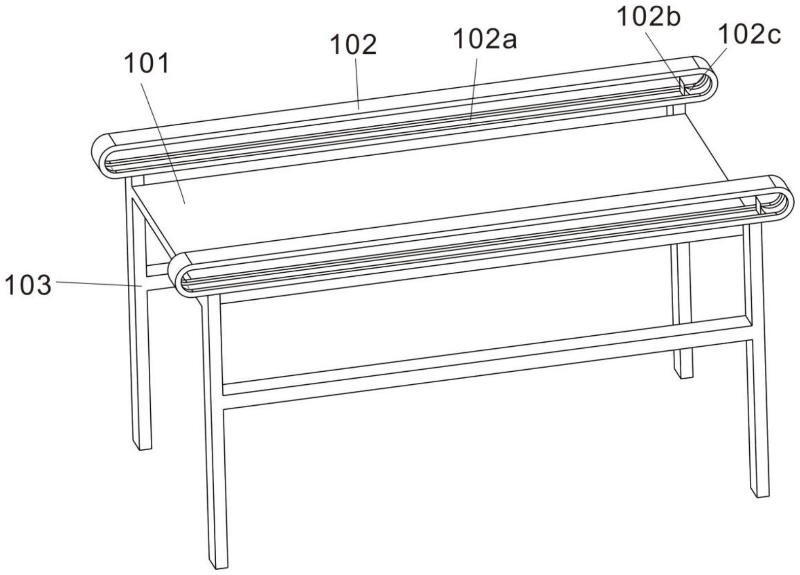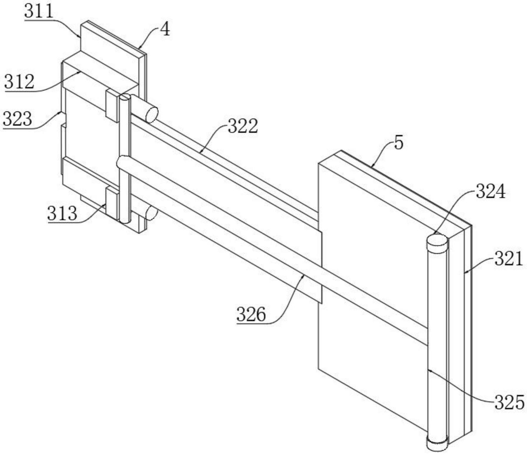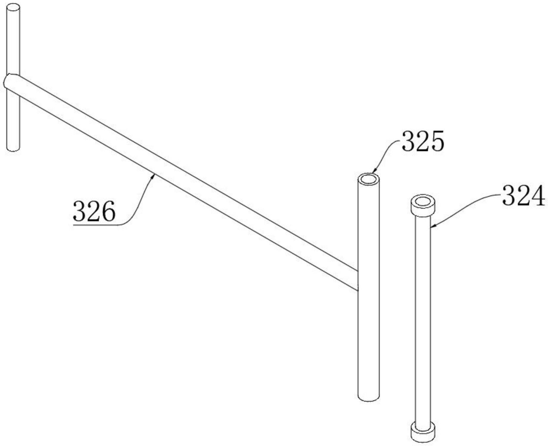 图2 图3 图4 图5 图6 图7 图1为本实用新型提出的一种土工布收放装置的立体结构图; 图2为本实用新型提出的一种土工布收放装置的操控箱内部结构图; 图3为本实用新型提出的一种土工布收放装置的清理机构结构图; 图4为本实用新型提出的一种土工布收放装置的清理机构内部剖视结构图; 图5为本实用新型提出的一种土工布收放装置的输送管结构图; 图6为本实用新型提出的一种土工布收放装置的导流板示意图; 图7为本实用新型提出的一种土工布收放装置的第一连接柱结构图。 图例说明: 1、底板;2、清理机构;201、支撑架;202、导流箱;203、斜板;204、刮片;205、第一旋转柱;206、风箱;207、风挡板;208、第二旋转柱;209、基板;210、气泵;211、连接管;212、电磁阀;213、输送管;214、通风管;215、喷头;216、导流板;3、操控箱;4、电机;5、连接器;6、连接轴;7、筒套;8、固定器;9、防护罩;10、底托板;11、第一连接柱;12、第一连接板;13、固定架;14、转动轴;15、第二连接柱;16、第二连接板;17、固定板;18、连接块;19、转筒。 6.实用新型名称:一种土工布生产的定长切割装置 申请号:CN202421019312.2 公开号:CN222294529U 授权公告日:2025.01.03 专利权人:江苏百益合成材料有限公司 本实用新型涉及一种土工布生产的定长切割装置,包括,支撑架,所述支撑架包括放置板和滑轨,所述滑轨设置于所述放置板两侧,所述滑轨上设置有计量刻度;拖动件,所述拖动件与滑轨连接,压平件,所述压平件设置于所述放置板上;本实用新型的土工布生产的定长切割装置通过压平见对土工布压平,避免褶皱对精度造成影响。