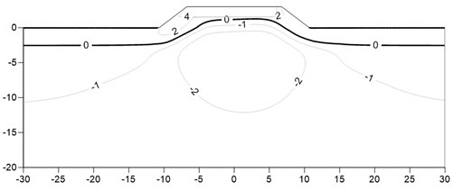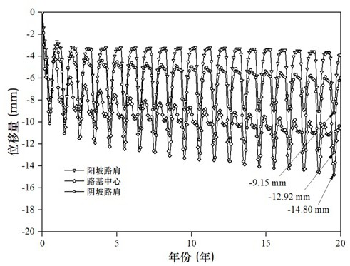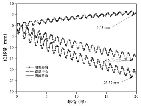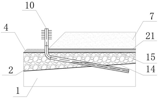 图2 图3 图4 图5 图6 图7 图8 图9 图10 图11 图1为本实用新型实施例中削减路面不均匀沉降的多年冻土路基降温结构的横断面图。 图2为本实用新型实施例中削减路面不均匀沉降的多年冻土路基降温结构的俯视图。 图3为本实用新型实施例中排水沟及渗水盲沟横断面图。 图4为本实用新型实施例中通风砖示意图。 图5为本实用新型实施例中L型热棒埋设连接示意图。 图6为本实用新型实施例中加筋格栅反包示意图。 图7为本实用新型削减路面不均匀沉降的多年冻土路基降温结构的施工方法流程图。 图8为传统热管路基的温度场分布图。 图9为本实用新型实施例的温度场分布图。 图10为传统热管路基阳坡路肩、路基中心和阴坡路肩的变形。 图11为本实用新型实施例的路基阳坡路肩、路基中心和阴坡路肩的变形。 图例说明: 1—天然地基;2—块石挤压层;3—路堤;4—垫层;5—加筋格栅;6—保温板;7—填土;8—沥青路面;9—通风砖;10—L型热棒;11—U型排水沟;12—渗水盲沟;13—导水管;14—不透水土工布I;15—透水土工布;16—粗颗粒填料;17—C20混凝土垫层;18—水泥砂浆垫层;19—挡水土捻;20—不透水土工布II;21—不透水土工布Ⅲ;22—不透水土工布Ⅳ;23—不透水土工布Ⅴ。 5.实用新型名称:一种土工布收放装置 申请号:CN202420217488.2 公开号:CN222293103U 授权公告日:2025.01.03 专利权人:宏诚合成材料(江苏)有限公司 本实用新型涉及土工布技术领域,公开了一种土工布收放装置,包括底板,所述底板的前侧设置有清理机构;所述清理机构包括:支撑架、第一旋转柱和风箱,所述支撑架的底部固定连接有基板,所述支撑架的内部固定连接有导流箱。本实用新型通过设置的清理机构,能够解决导致在收卷的时,会将粘黏在上面的泥土等污垢同时的卷起来,导致影响土工布的性能,导致卷取不均匀,可能会导致土工布卷筒上的不规则堆积,影响土工布的展开和使用的问题,通过气泵将气体通过连接管和输送管传递到通风管中,在通过风箱上的风挡板来进行风的流向从而有效的提高了对土工布的清洁,来确保土工布的干净度,来提高使用的寿命。