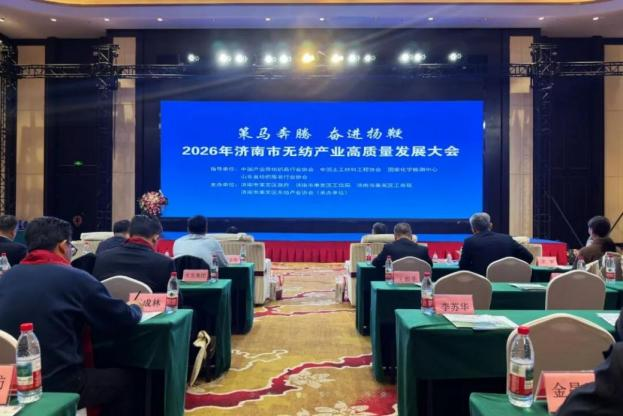 3月26日,由中国土工合成材料工程协会(以下简称协会)联合多家单位指导,济南市莱芜区政府、莱芜区工信局、莱芜区工商联主办,济南市莱芜区无纺产业协会承办的2026年济南市无纺产业高质量发展大会在莱芜区举行。协会副秘书长、石家庄铁道大学刘伟超教授受邀出席大会并作报告,协会常务理事单位泰安现代塑料有限公司总经理王鹏,协会副秘书长、济南市莱芜区无纺产业协会会长赵波,协会理事单位潍坊驼王实业有限公司副总经理徐悦,山东莱芜新甫冠龙塑料机械有限公司副总经理孟祥地,国家化学建筑材料测试中心庄亚芳博士受邀参会并致辞。